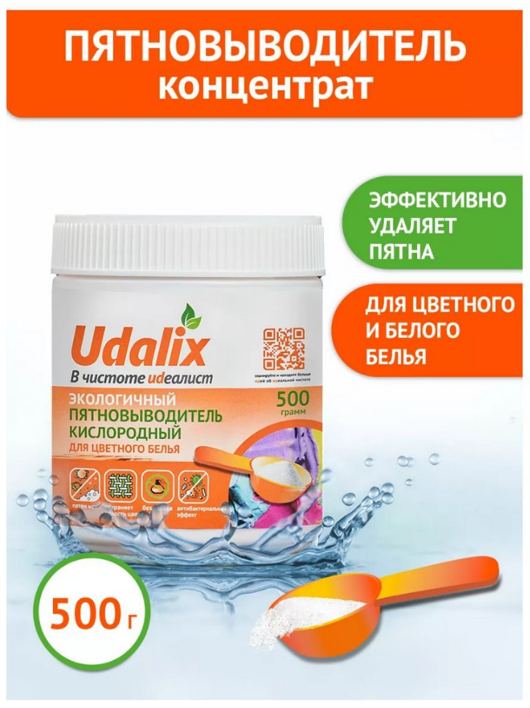 Купить Udalix Пятновыводитель кислородный для цветных тканей в банке, 500гр