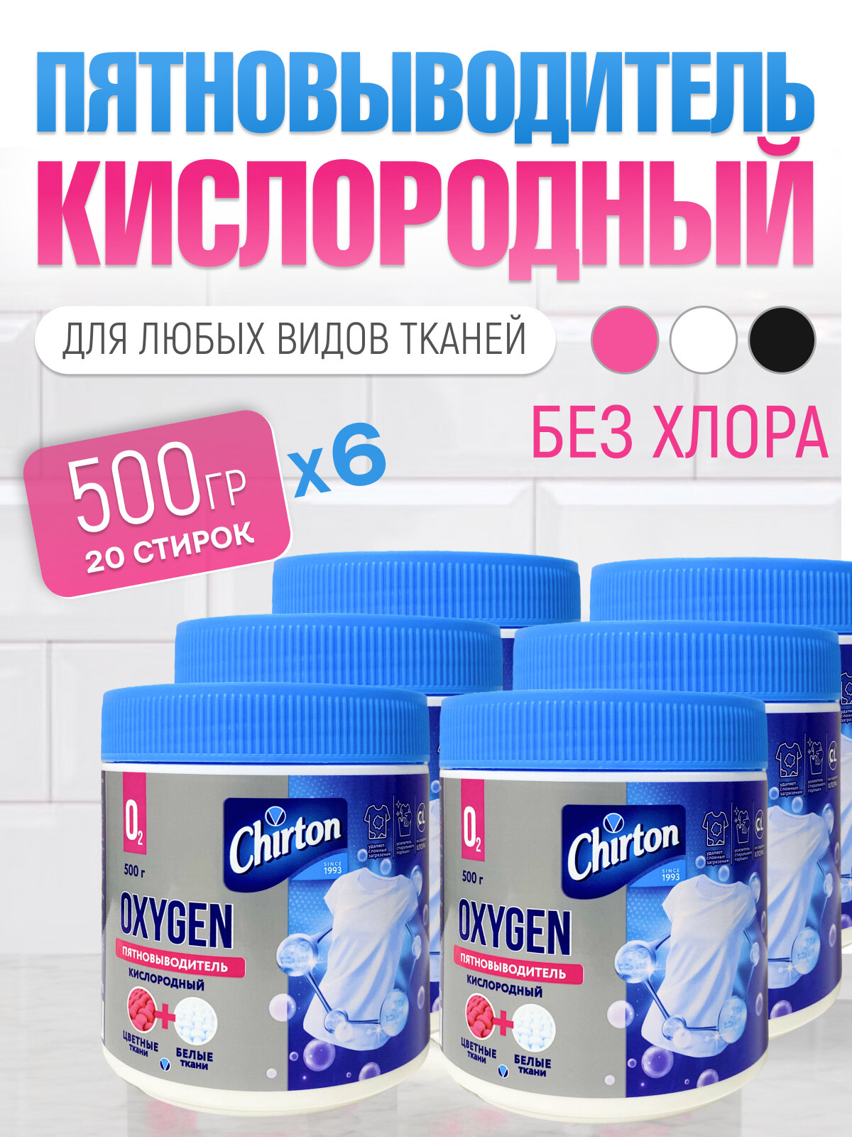Chirton Отбеливатель-пятновыводитель Oxygen кислородный 500 г - 3 шт