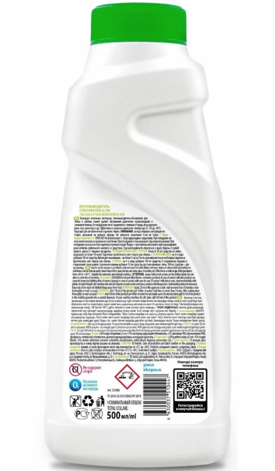 Отбеливатель-пятновыводитель Grass G-OXI gel для белых тканей, 500 мл
