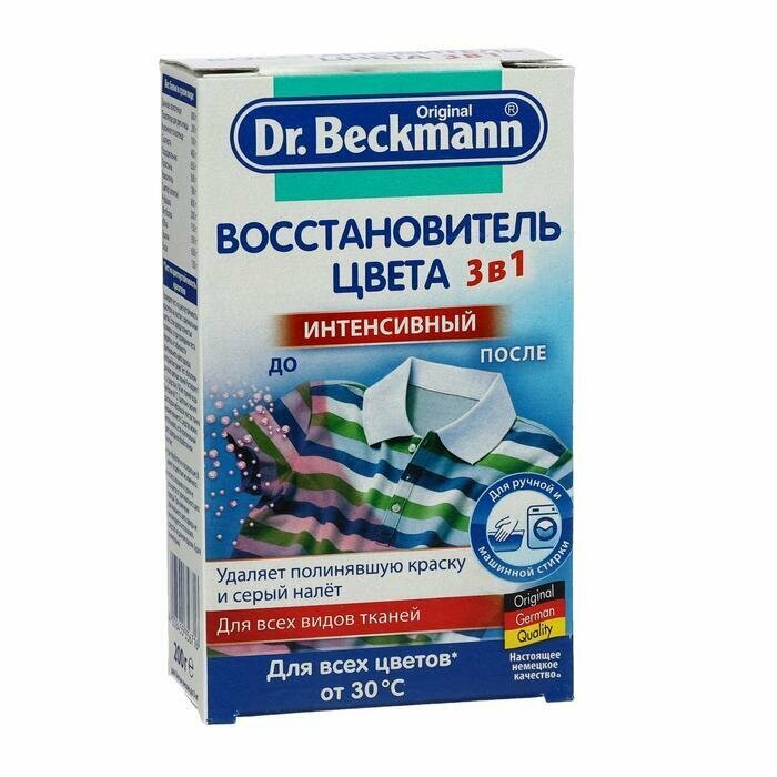 Отбеливатель-пятновыводитель Dr. Beckmann Восстановитель цвета 3 в 1, 200 г (2 пакетика по 100 г в коробке)