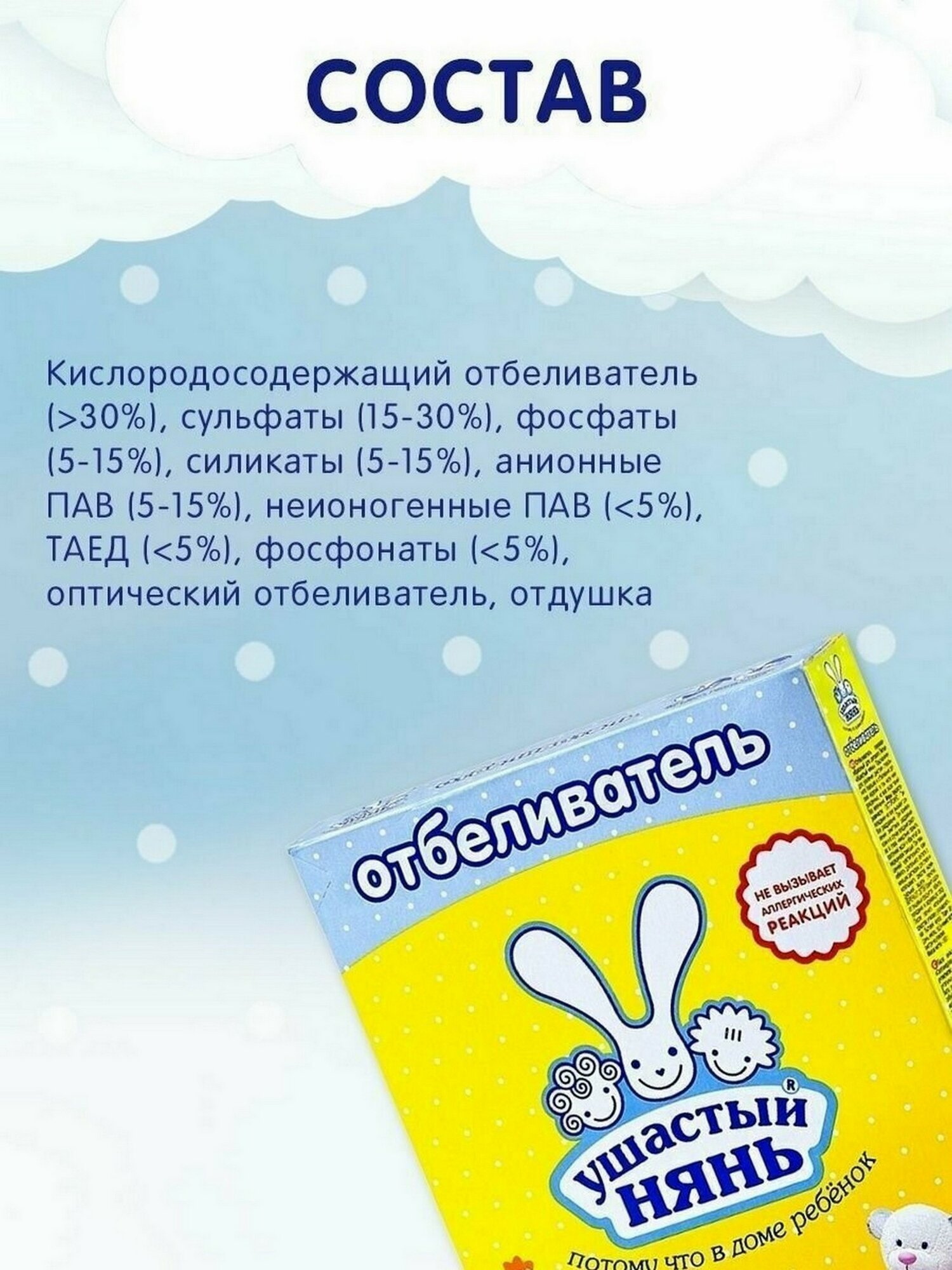 Отбеливает , хорошая цена , очень красивое оформление Ушастый нянь |