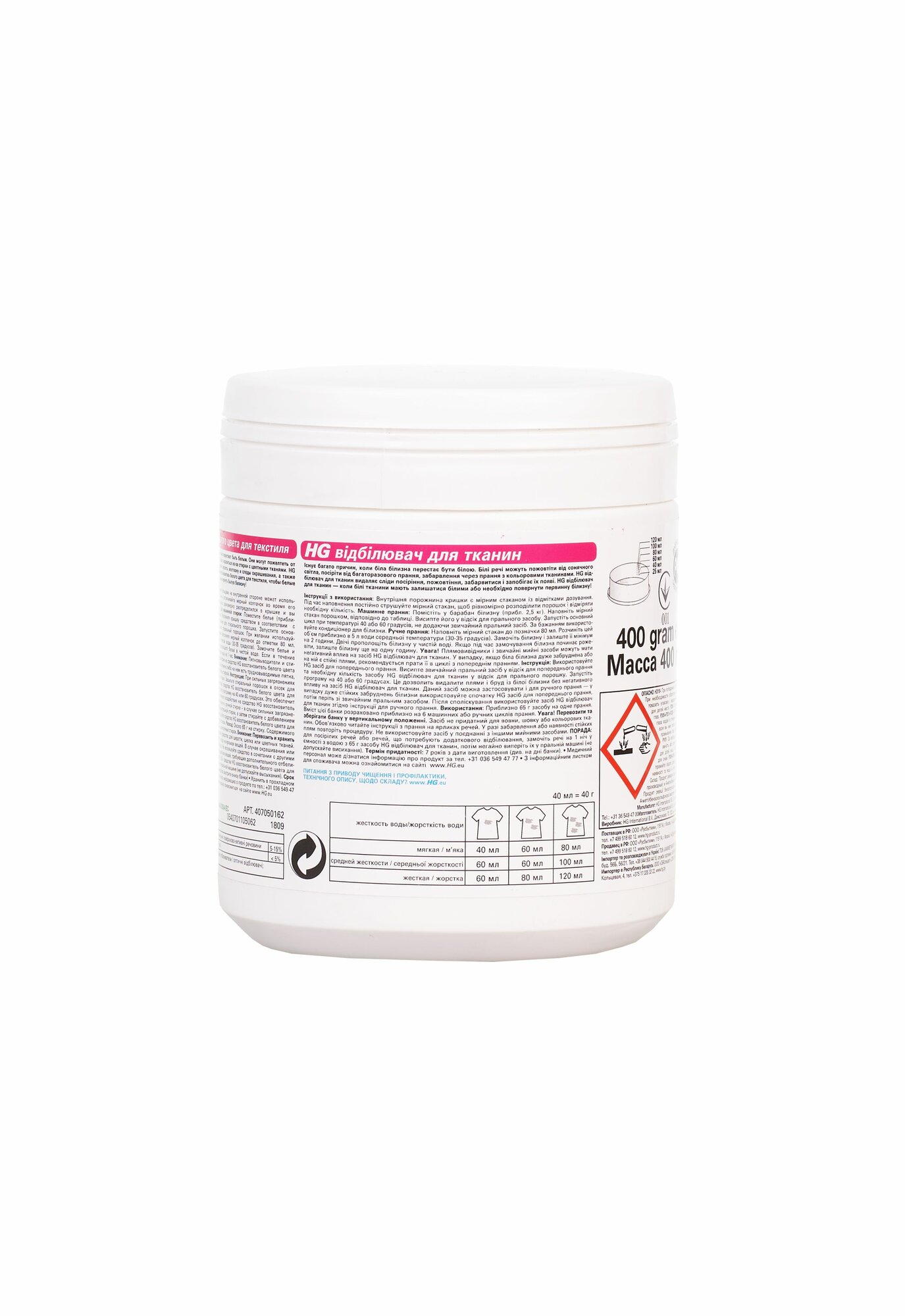 Отбеливатель HG для текстиля, 400 г