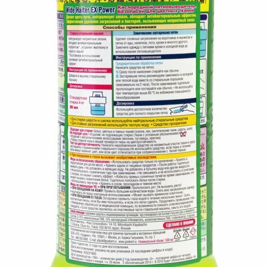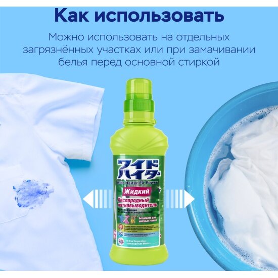 Пятновыводитель Attack Wide Haiter EX Power для белого и цветного белья, 600 мл