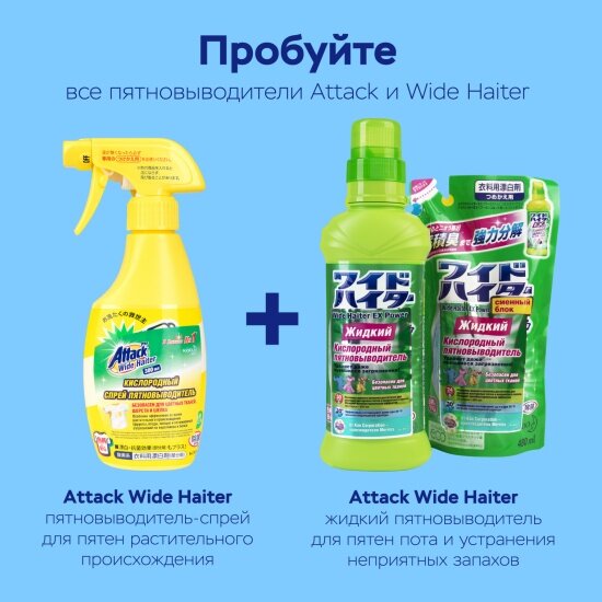 Пятновыводитель Attack Wide Haiter EX Power для белого и цветного белья, 480 мл, 490 г