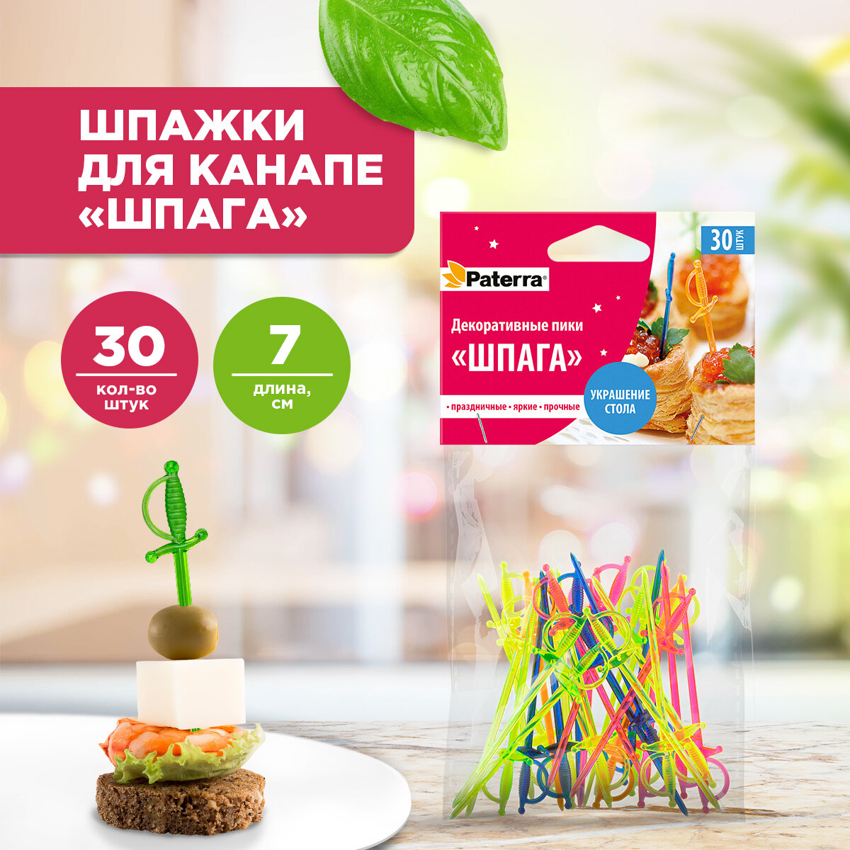 Пики Paterra Шпага разноцветные, одноразовые, 7см, 4 упаковки интересное: