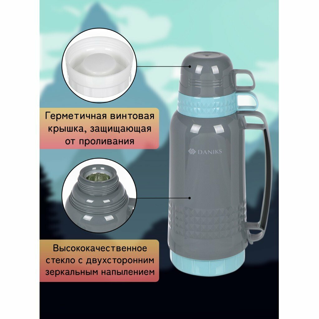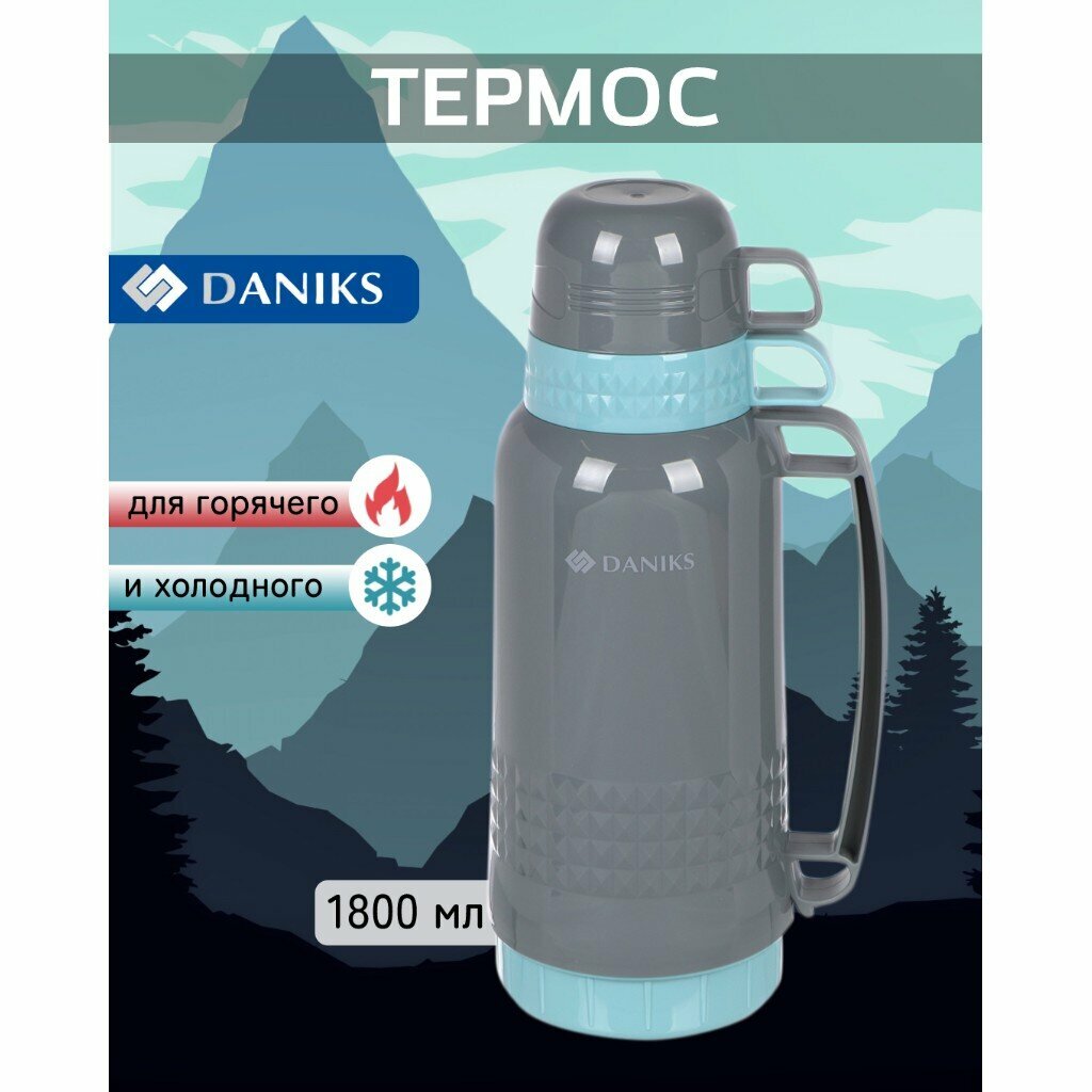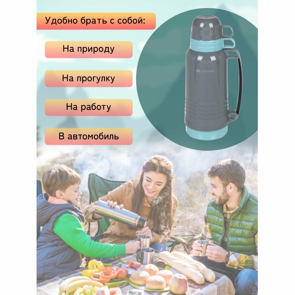 Термос пластик, 1.8 л, Daniks, колба стекло, зеленый, CA-180 интересное: