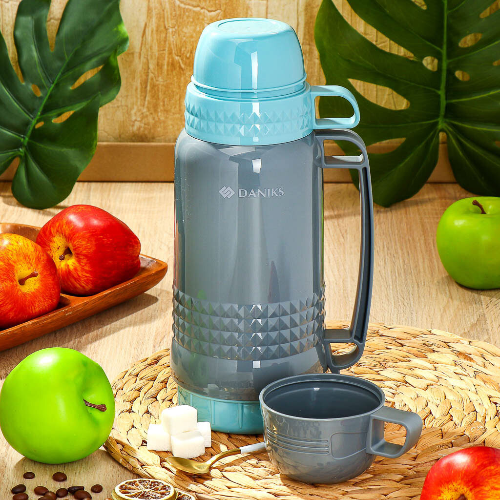 Термос пластик, 1 л, Daniks, колба стекло, зеленый, CA-100 интересное: