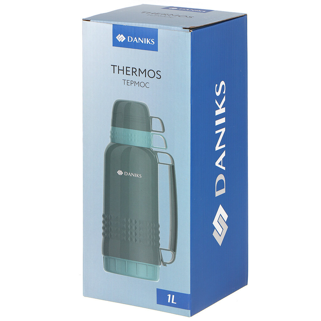 Купить Термос пластик, 1 л, Daniks, колба стекло, зеленый, CA-100