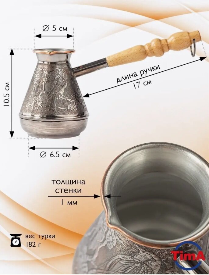 Кофеварка медная TimA "Райские Птицы" с деревянной ручкой, объём 0,39л интересное: