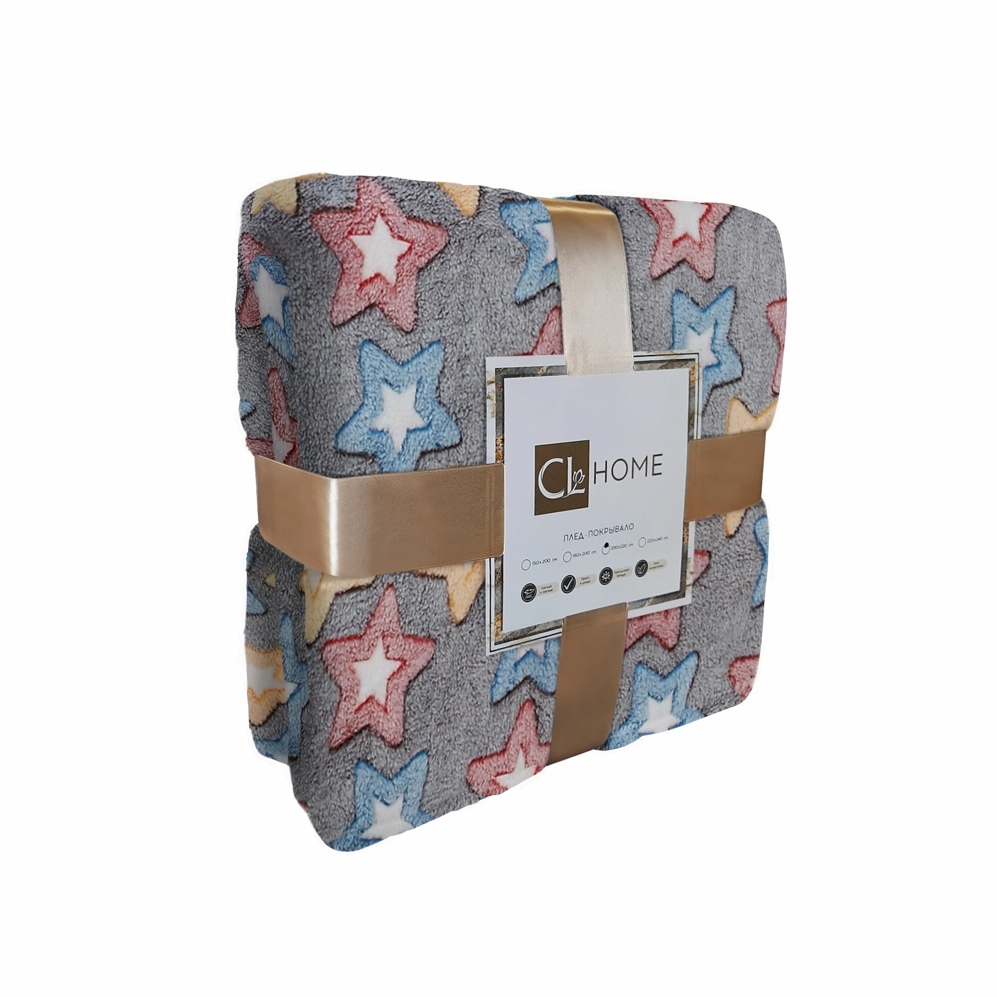 Купить Плед полуторный велсофт 150х200 Cleo Bamboo пушистый со звездами в атласной ленте