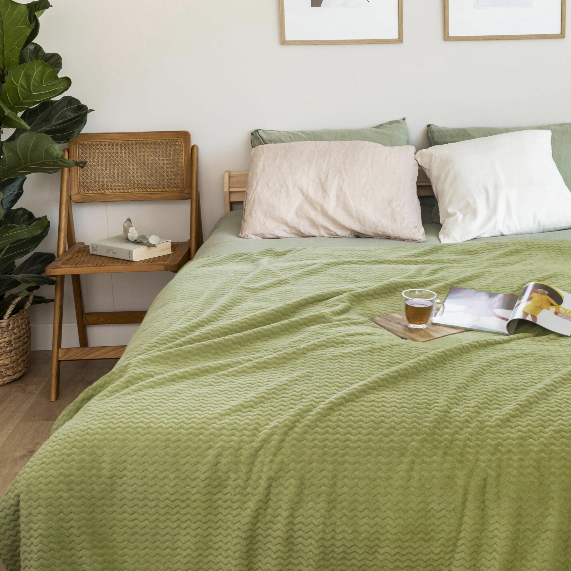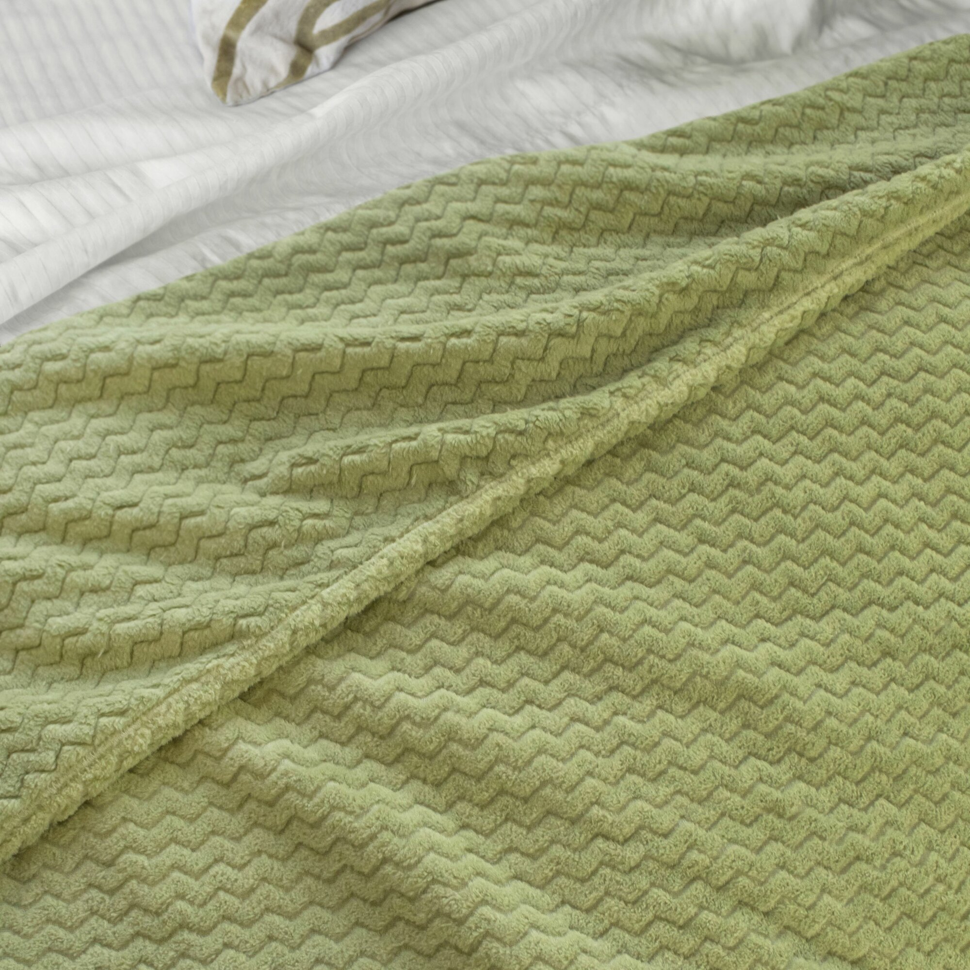 Плед двуспальный 180х200 однотонный зеленый, покрывало на кровать и диван Cleo Royal Plush, пушистый, флисовый, велсофт