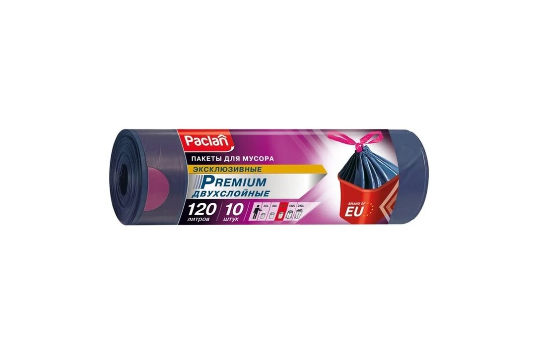 PACLAN PREMIUM Мешки для мусора с тесьмой 120 л, 10 шт. (ПВД)