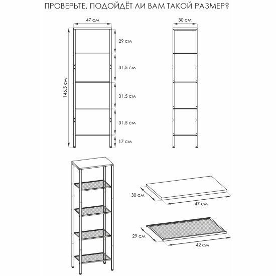 Стеллаж Валенсия 24 W Valencia 24 W Shelf rack Черный Ств24д Ч (1) серый,45х30х65 .