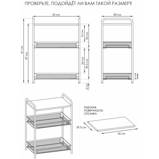 | Плюсы: | Крепкая этажерка на колесах. То что искал |
