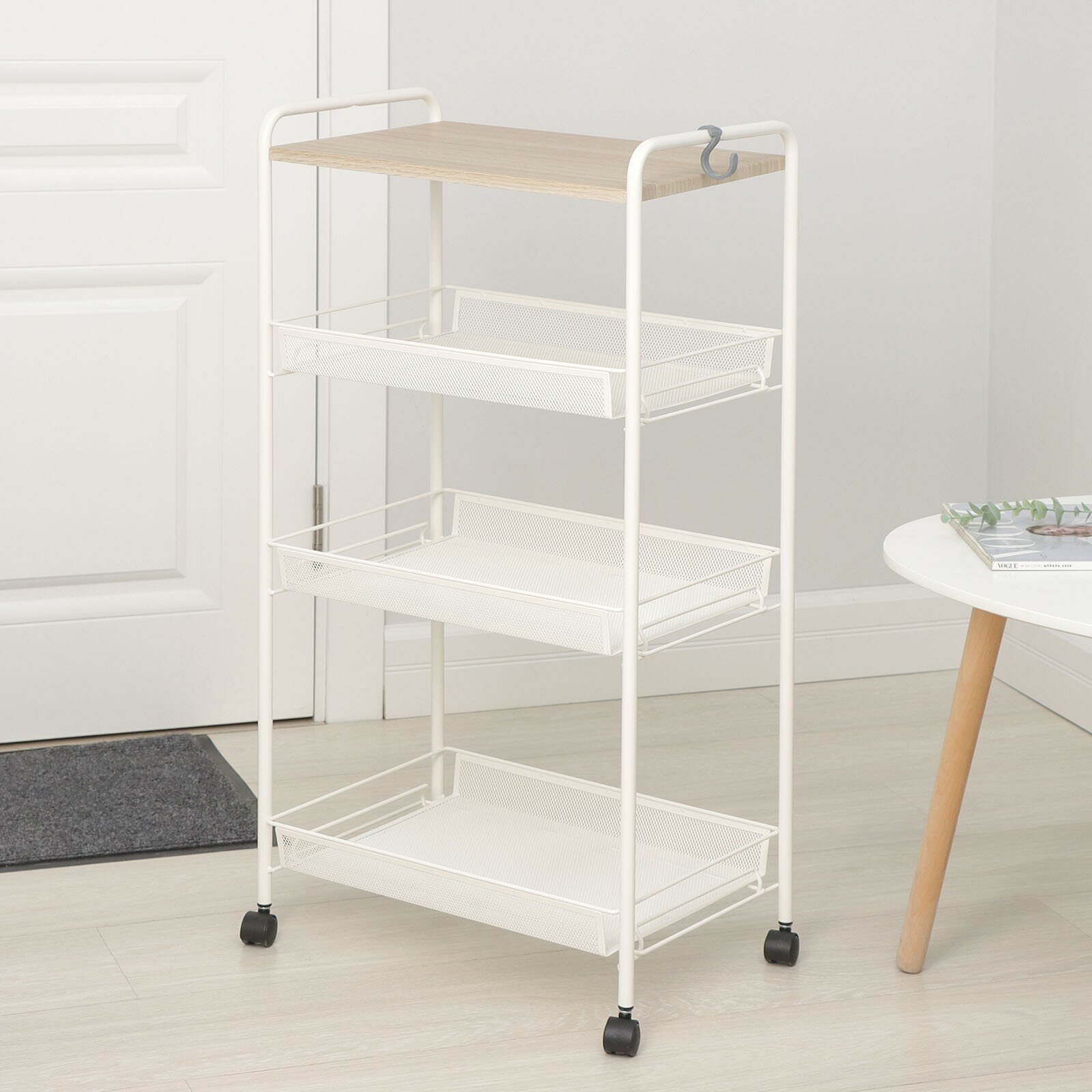 | Плюсы: | Очень лёгкая в сборке,при этом устойчивая. Колесики скользят хорошо,легко передвигается. Полочки в мелкую сеточку. Сделана аккуратно. Идеально подошла для мелочей,косметики,расчесок. |