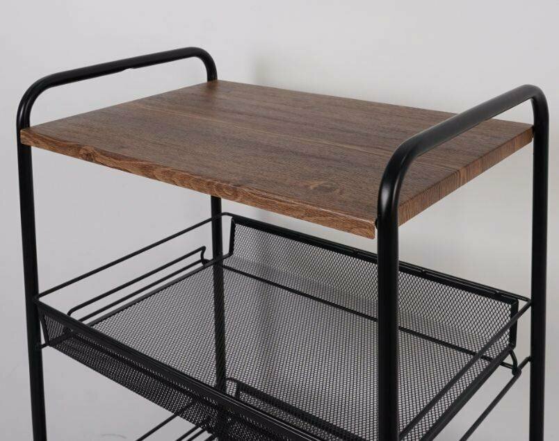 Купить Этажерка "Ладья 34КС" 840х300х445 мм колесики и столик под дерево (Черный)