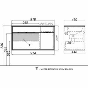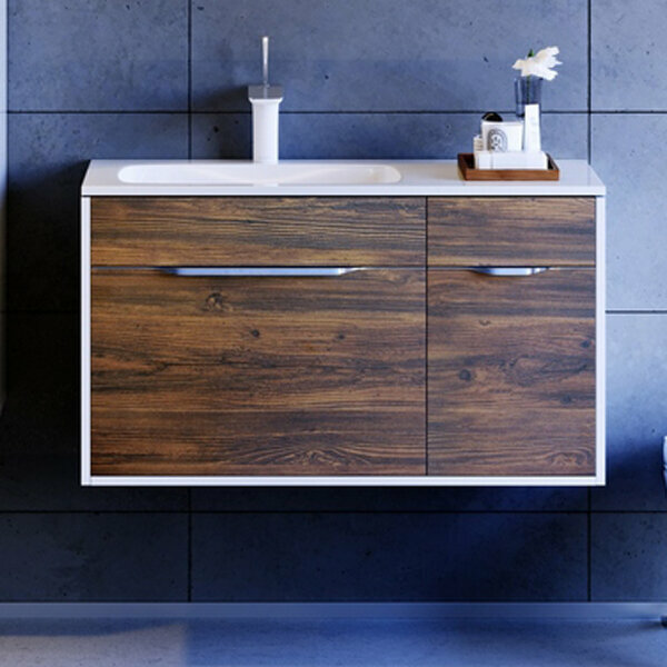 Aqwella Подвесная тумба 90 Левая. Malaga крафт темный Mal.01.09/L/CD + умывальник Malaga 900L Mal.09.04.D-L Aqwella