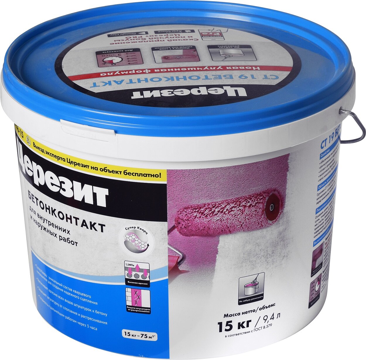 Церезит СТ-19 Бетоноконтакт для внутренних и наружных работ (15кг) / CERESIT CT19 Бетонконтакт грунтовка для повышения адгезии (15кг)
