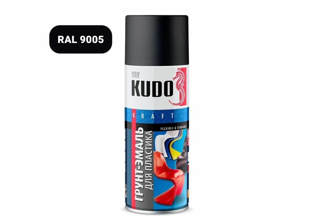 Купить Грунт-эмаль для пластик быстросохнущая акриловая матовая черный RAL 9005 KUDO KU-6002 520 мл