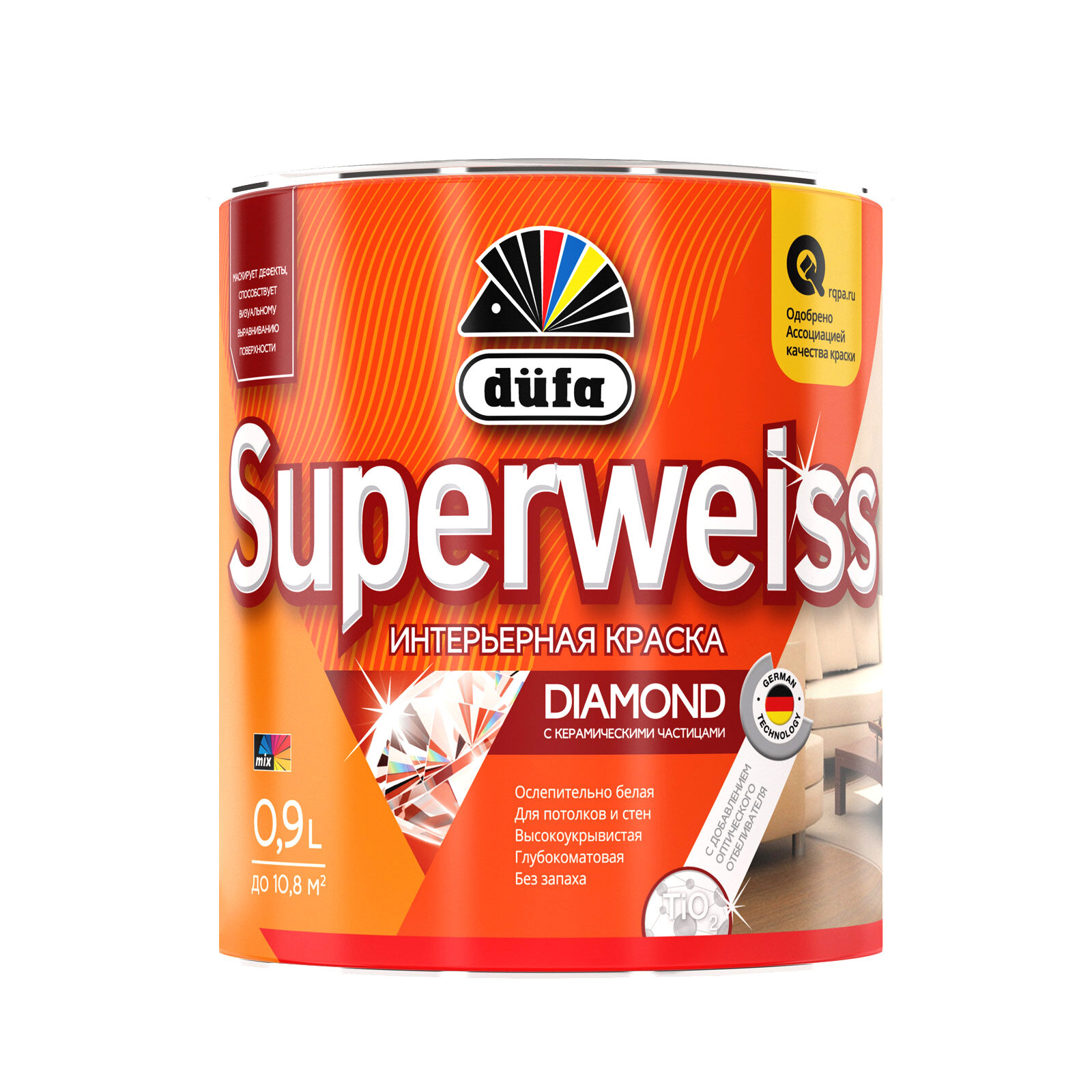 Краска интерьерная dufa Superweiss Diamond 0,9 л белая (база 1)