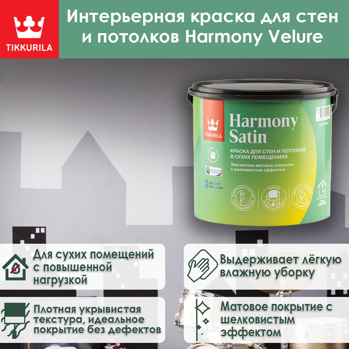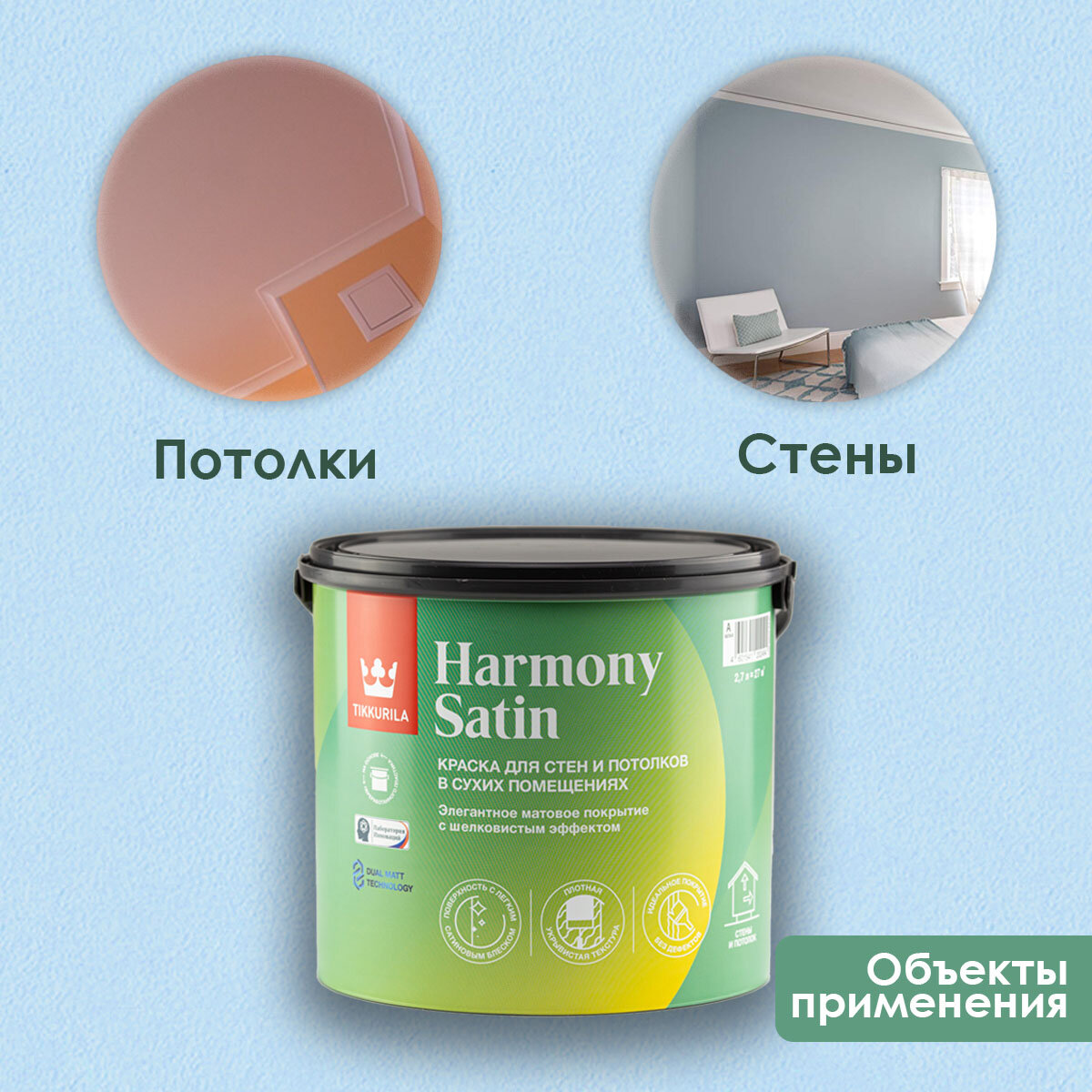 Краска TIKKURILA HARMONY SATIN для стен и потолков, матовая, база A, 2.7 л