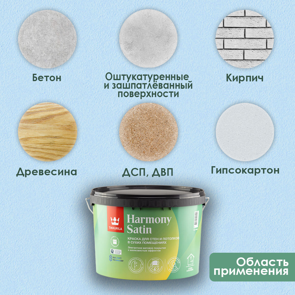 TIKKURILA Harmony Satin (Joker) краска для стен и потолков акриловая, 1 класс, матовая база А (0.9 л)