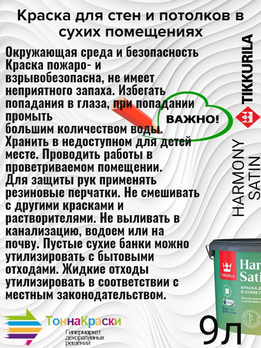 СохранитьКраска Tikkurila Harmony Satin для стен и потолков база A 9 л интересное: