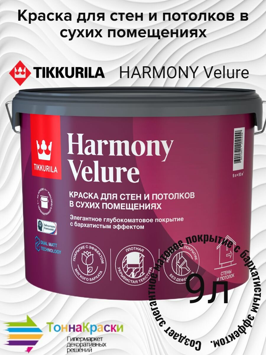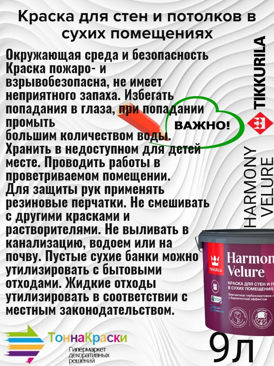 СохранитьКраска для Стен и Потолков Tikkurila Harmony Velure 9л Белая, Глубокоматовая / Тиккурила Гармония Велюр. интересное: