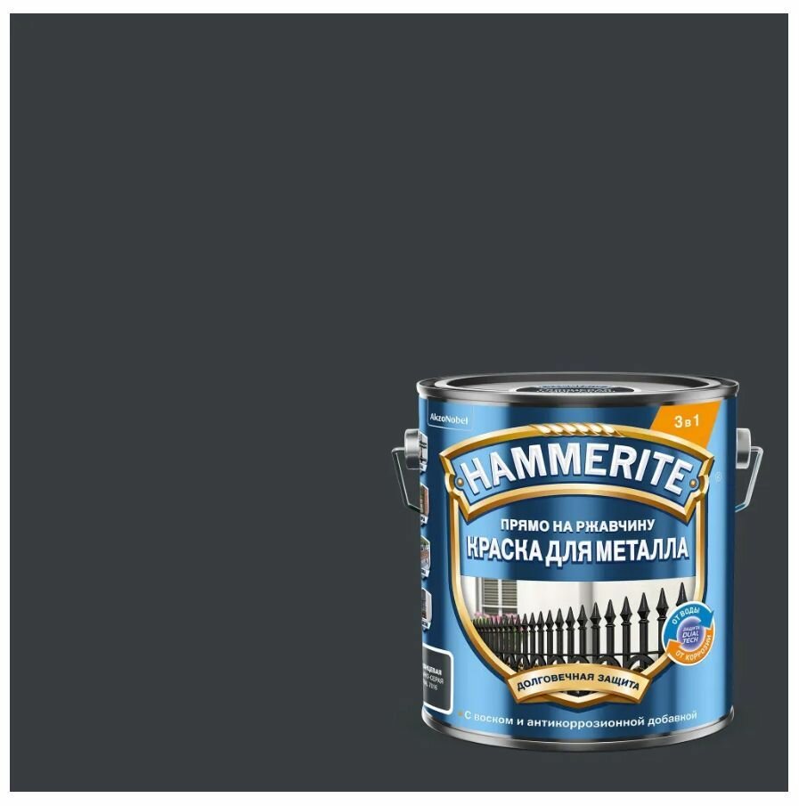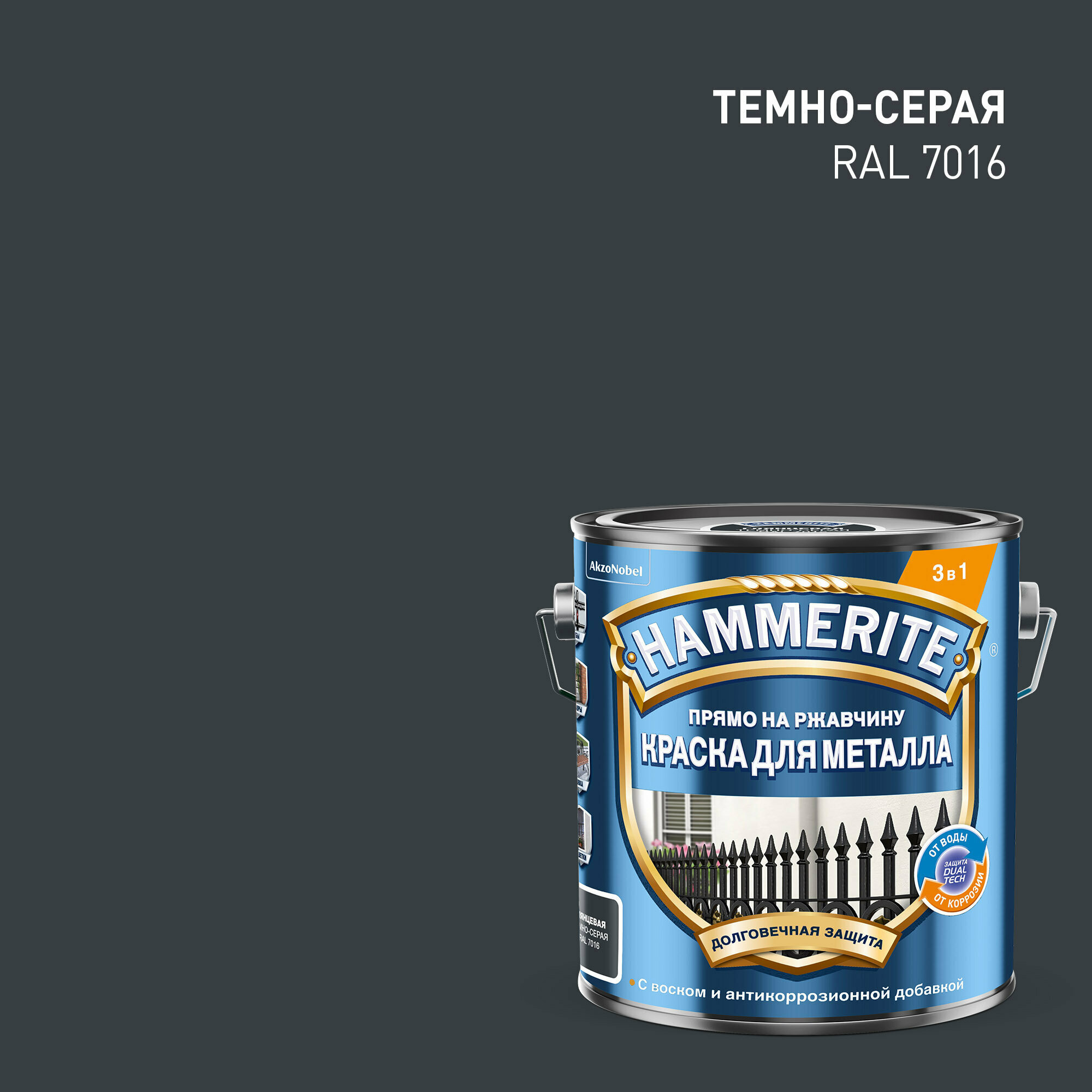 Краска для металла 3 в 1 прямо на ржавчину Hammerite гладкая глянцевая (2л) темно-серый RAL 7016