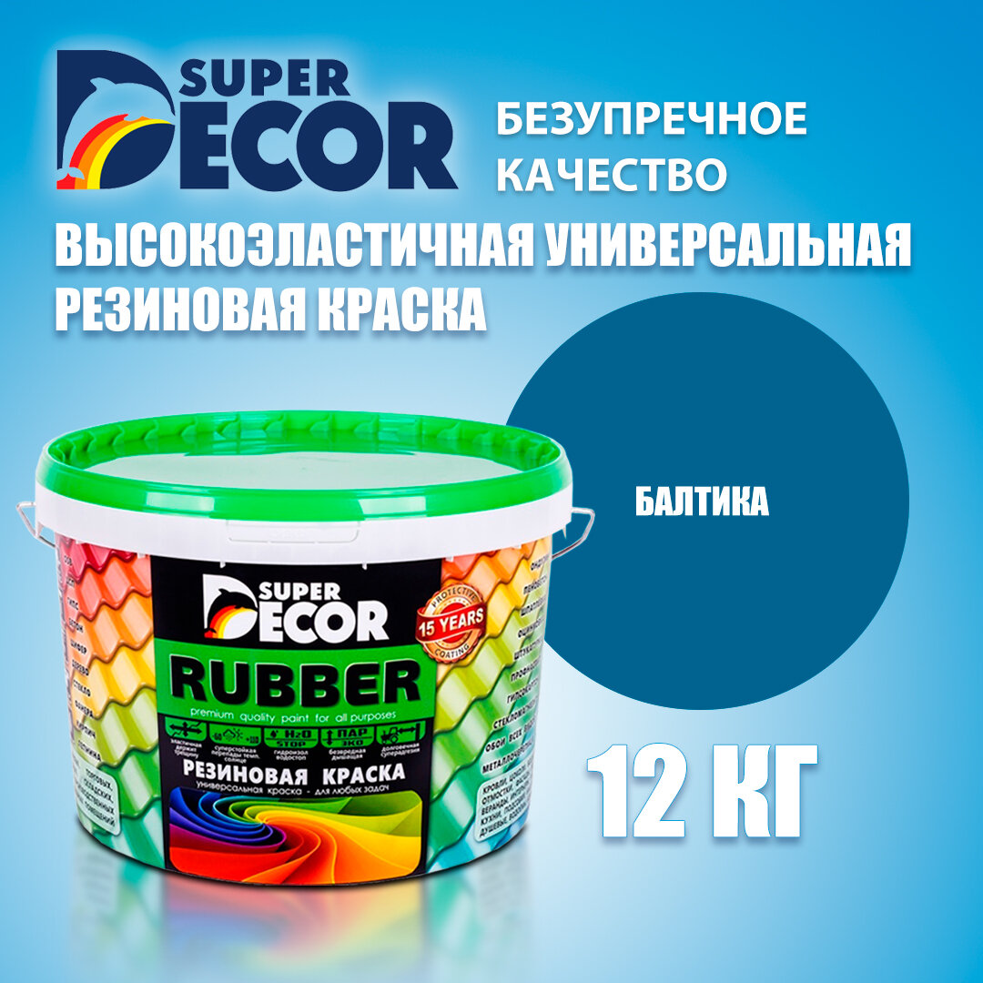 Купить Резиновая краска Super Decor Rubber №07 Балтика 12 кг, матовая краска без запаха, для бетона, дерева, фасада