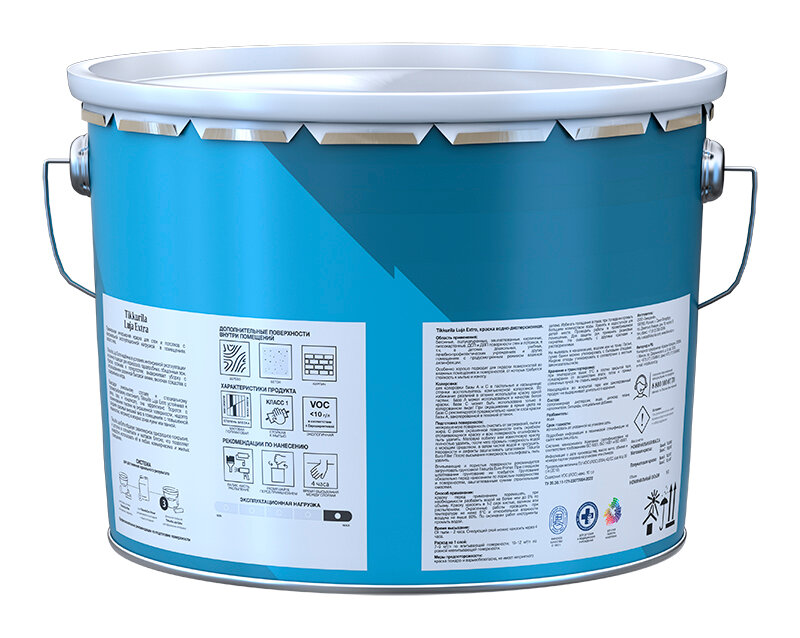 Краска TIKKURILA EURO EXTRA 20 моющаяся для влажных помещений, полуматовая база С 9л бесцветная
