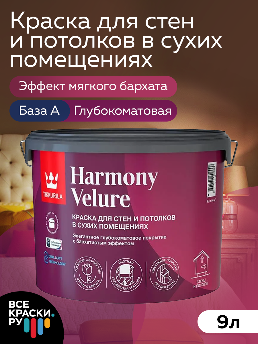 TIKKURILA HARMONY VELURE (Harmony) краска для стен и потолков акриловая глубокоматовая база А (0,9л)