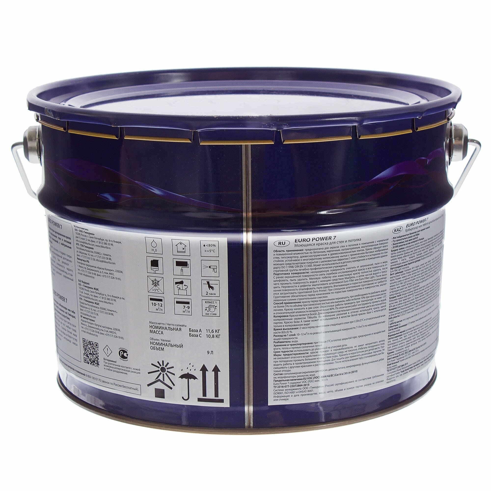 TIKKURILA EURO POWER 7 краска моющаяся для стен и потолка, матовая, база A (2,7л)