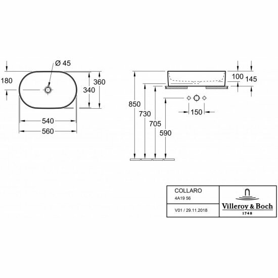 Раковина 56x36 см Villeroy & Boch Collaro 4A1956R1