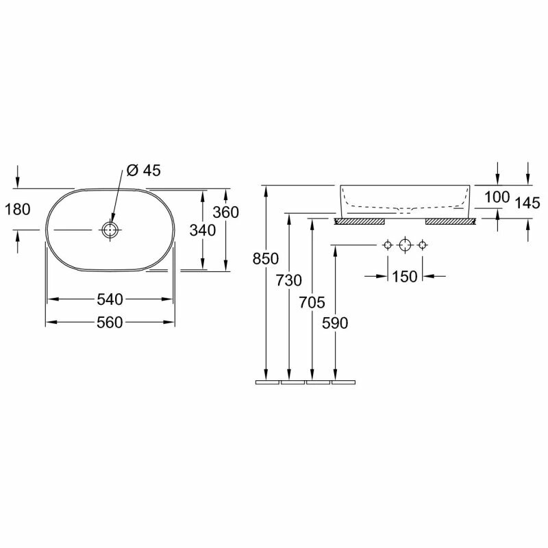 Раковина, Villeroy&Boch, Collaro, шгв 560*360*145, отверстия для смесителя-отсутствуют, CeramicPlus, цвет-альпийский белый