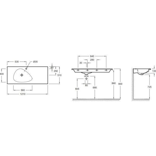 Раковина Jacob Delafon Nouvelle Vague 121 см EXAP112-Z-MK4
