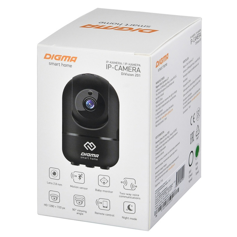 Камера IP Digma DiVision 201 CMOS 2.8 мм 1280 x 720 Wi-Fi черный