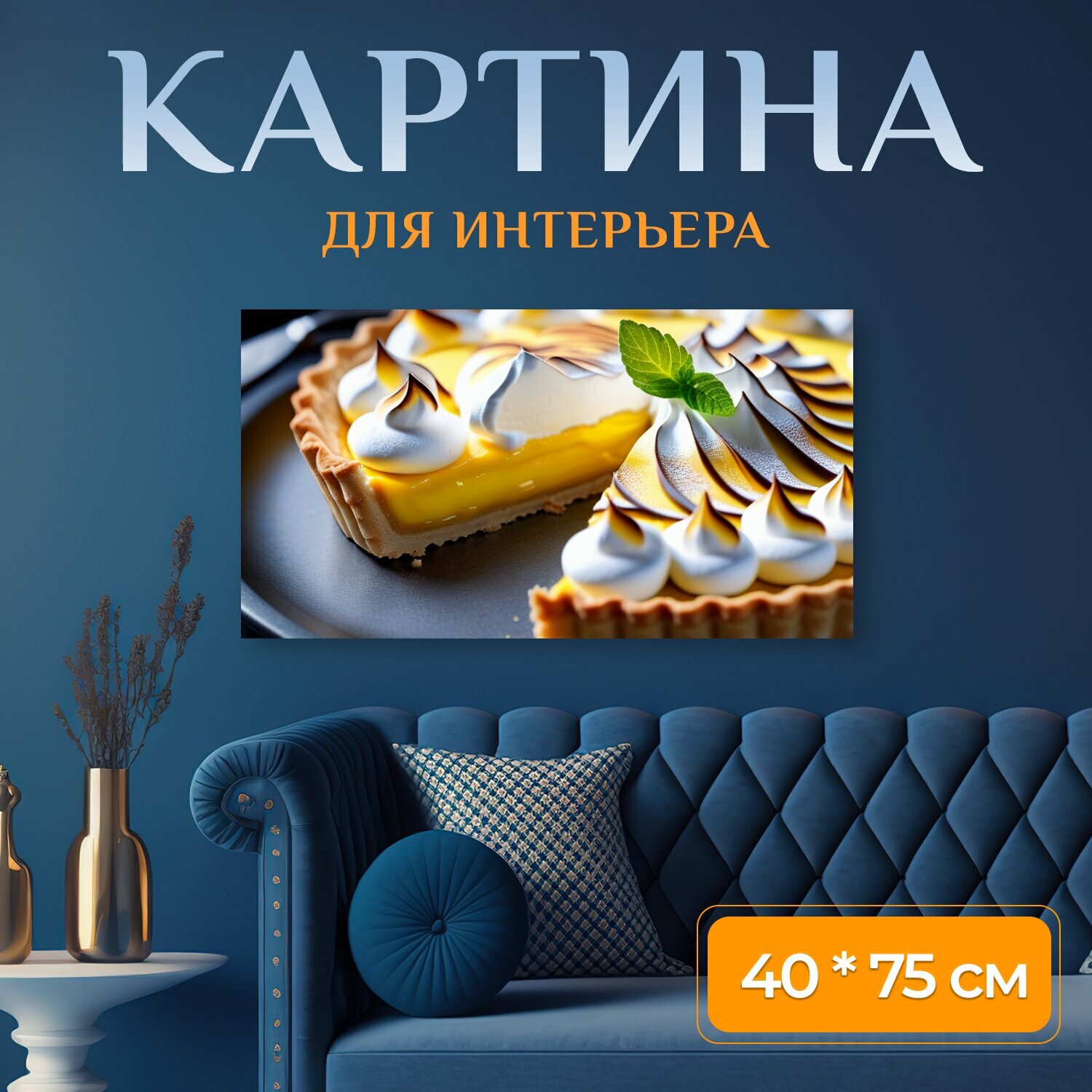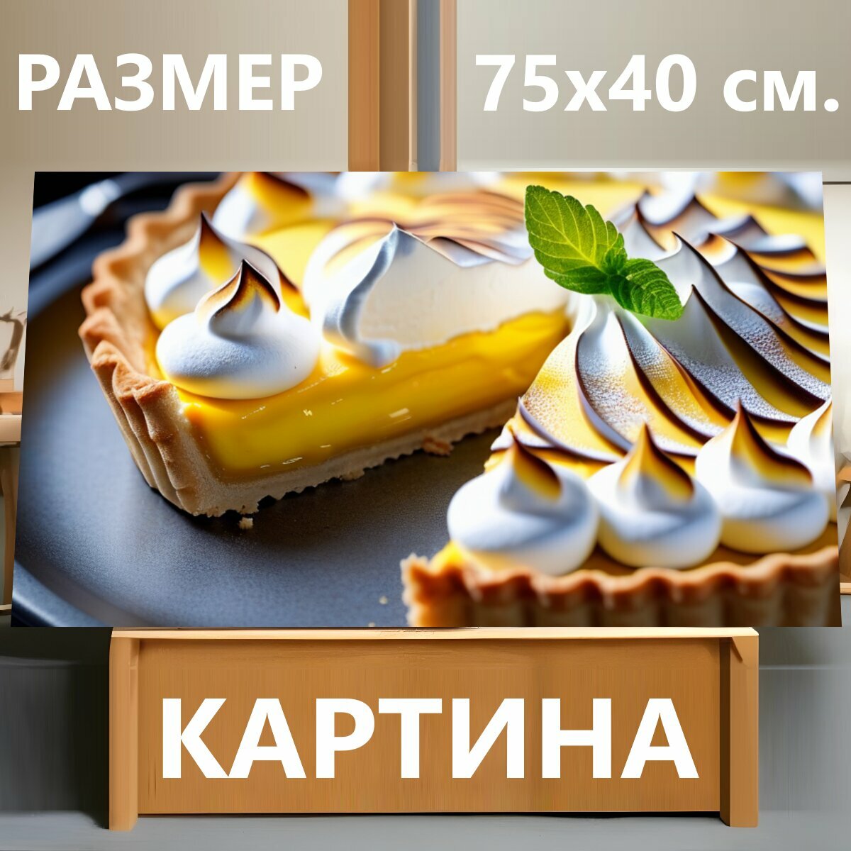 Картина на холсте в кафе "Лимонный тарт с меренгой" на подрамнике 75х40 см. для интерьера интересное: