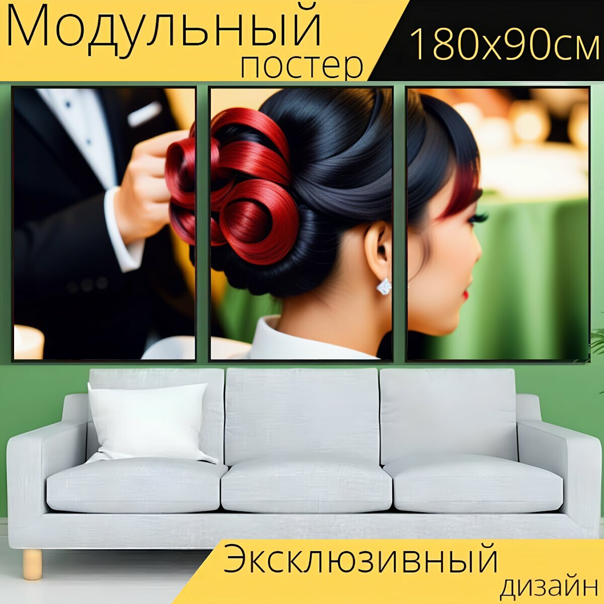 Модульный постер в парикмахерскую "Прическа для гала-ужина , " 180 x 90 см. для интерьера на стену интересное: