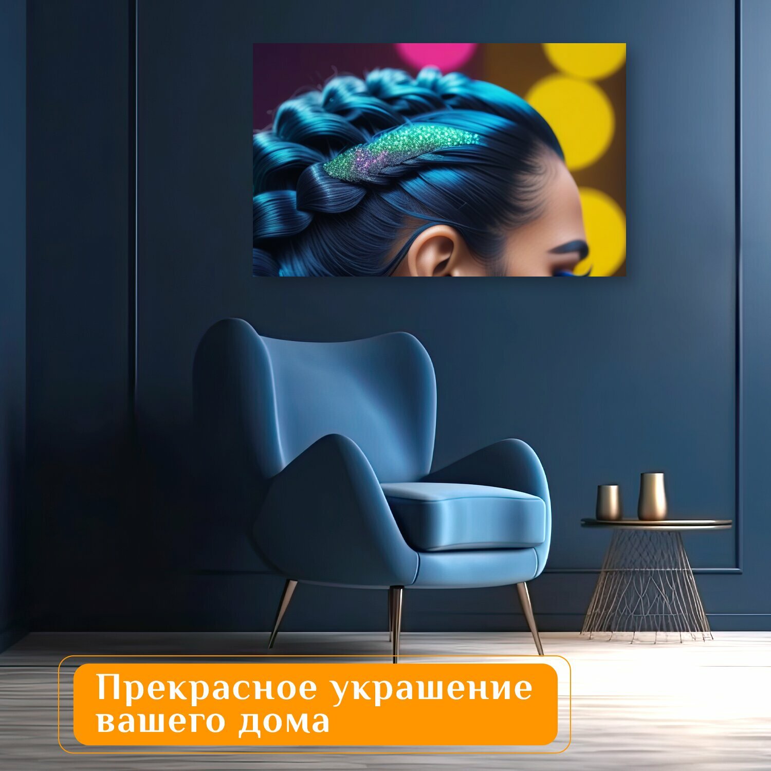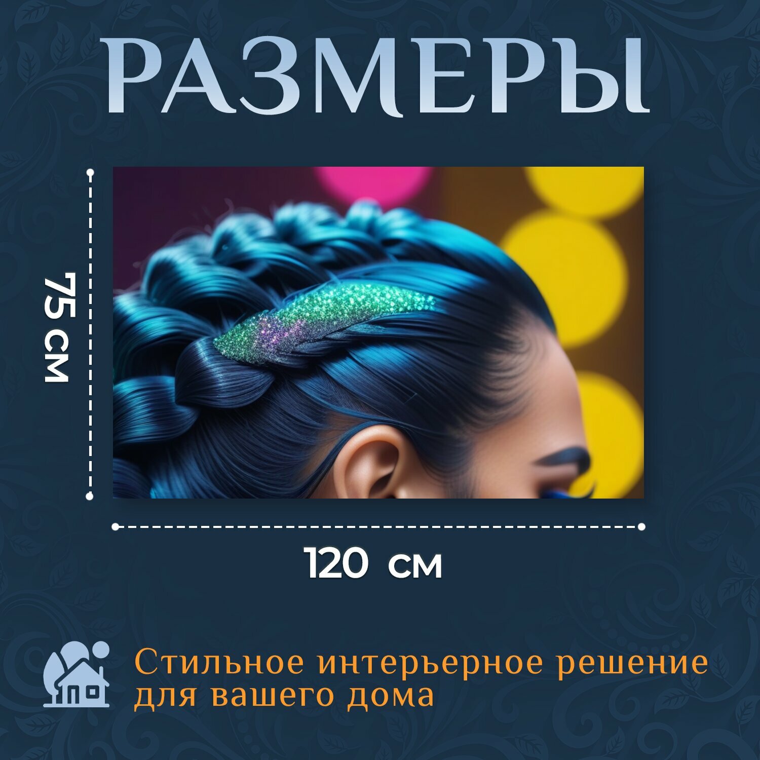 СохранитьКартина на холсте в парикмахерскую "Прическа с хвостом и блестками , " на подрамнике 120х75 см. для интерьера интересное: