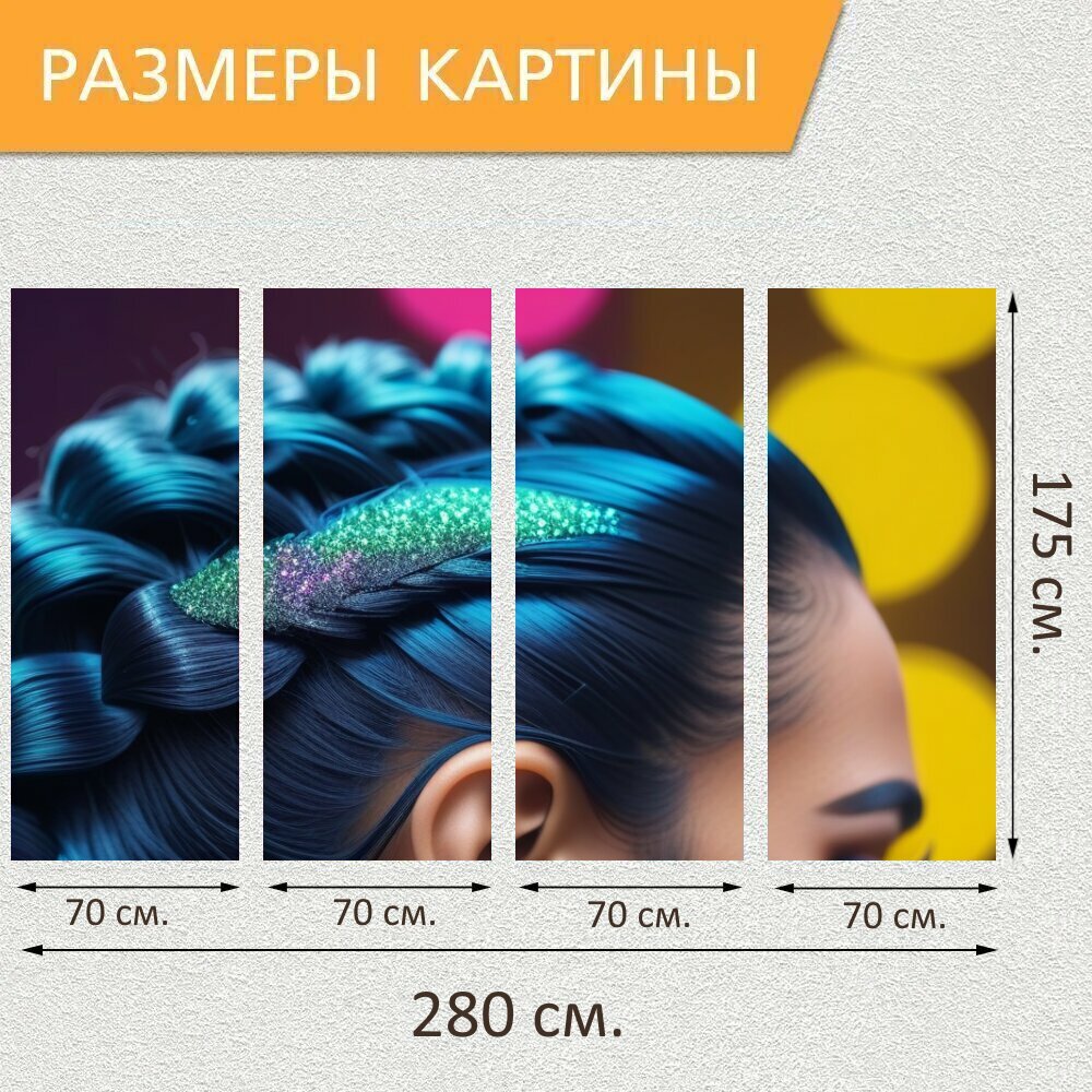 Картина на холсте в парикмахерскую "Прическа с хвостом и блестками , " на подрамнике 175х75 см. для интерьера