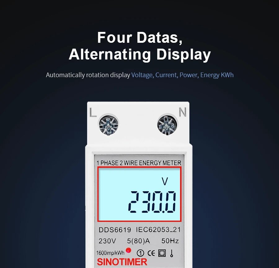 Однофазный двухпроводный ЖК-дисплей, ваттметр, DDS6619-008 интересное: