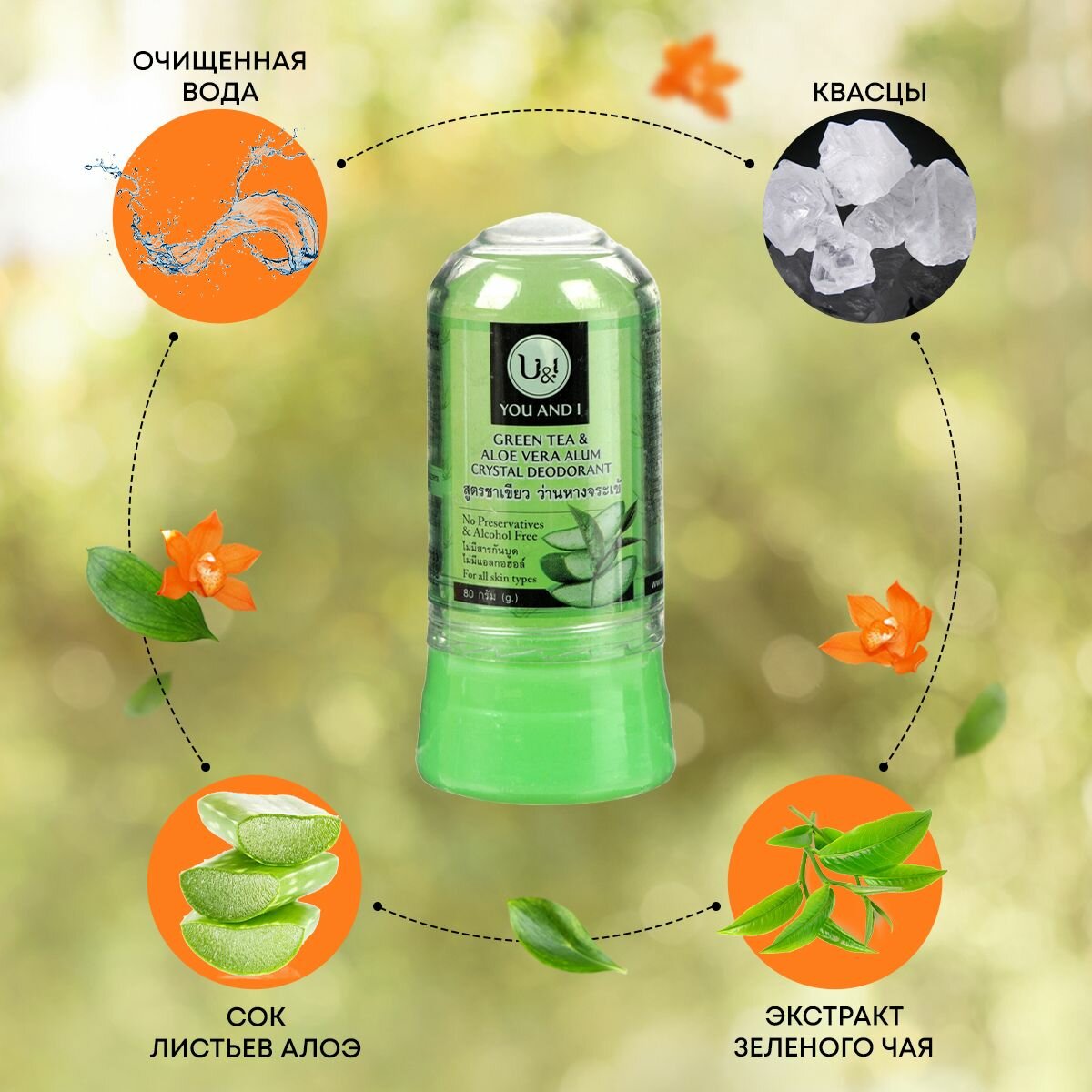Купить U&I Дезодорант кристаллический с зеленым чаем и алоэ вера 80 г 1 шт