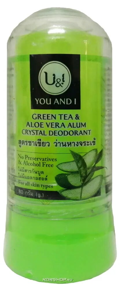 Дезодорант U&I с зеленым чаем и алоэ вера кристаллический, 80 г