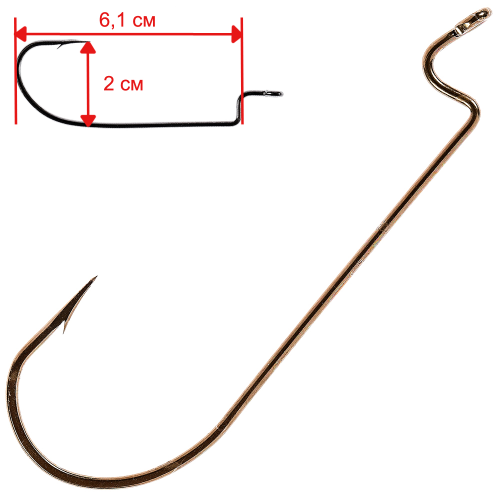 Крючки для рыбалки (одинарный) VMC Worm Hook офсетный 8313 BZ (бронза) №2/0, 2 упаковки по 10 штук