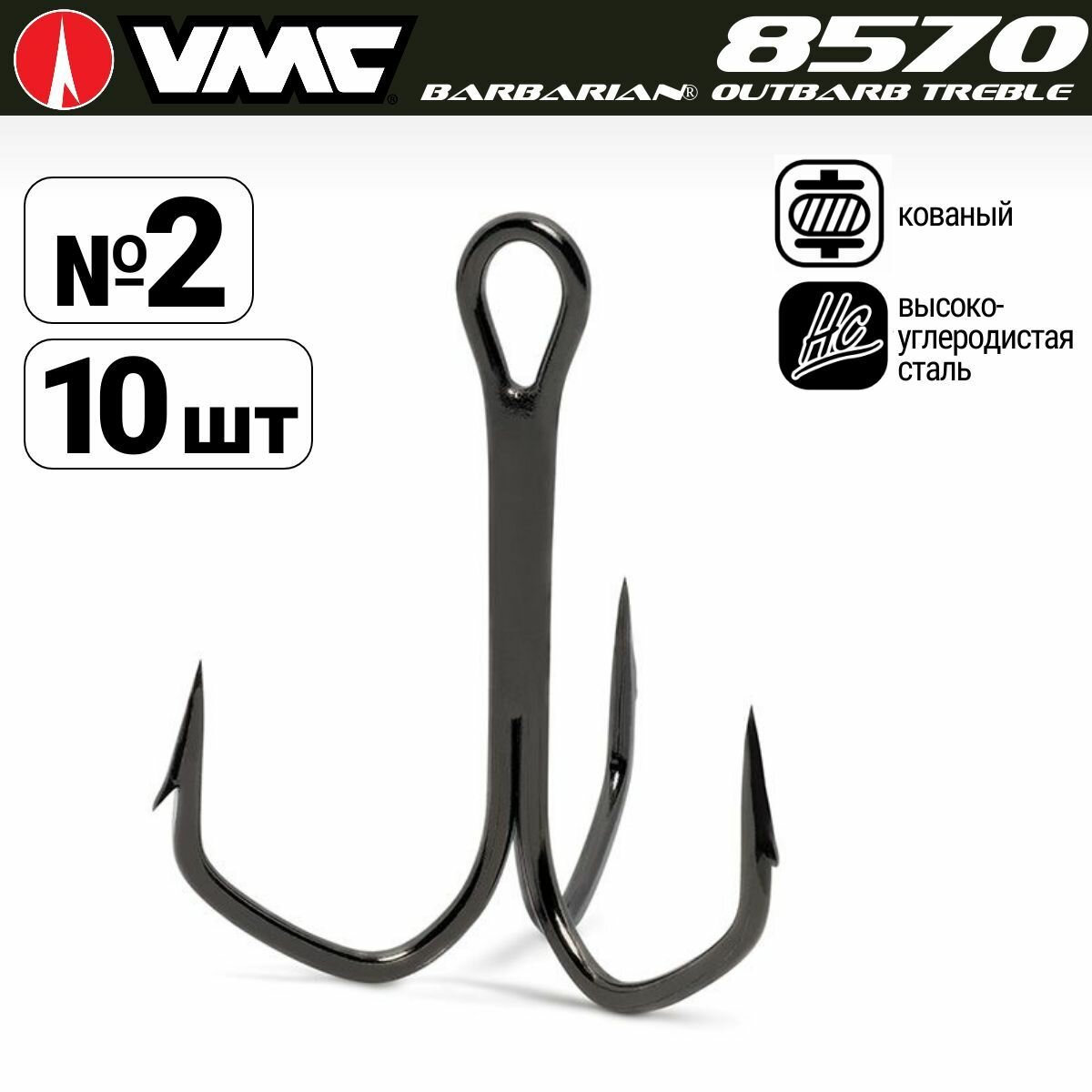 Крючки для рыбалки (тройник) VMC Barbarian Outbarb Treble 8570 BN (черн. никель) №06 (упаковка 10 штук)
