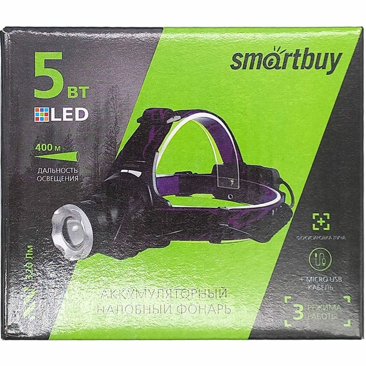 Фонарь налобный Smartbuy SBF-HL024, аккумуляторный, светодиодный, 5 LED, черный ( Артикул 307988 )