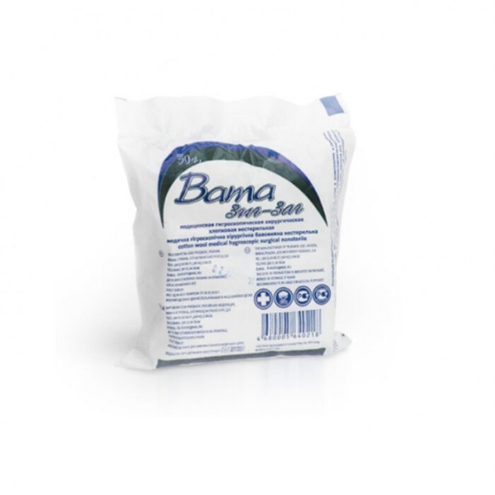 Емельянъ Савостинъ Вата медицинская нестерильная "Емельянъ Савостин", хирургическая, фасованная по 50г./В упаковке шт: 3