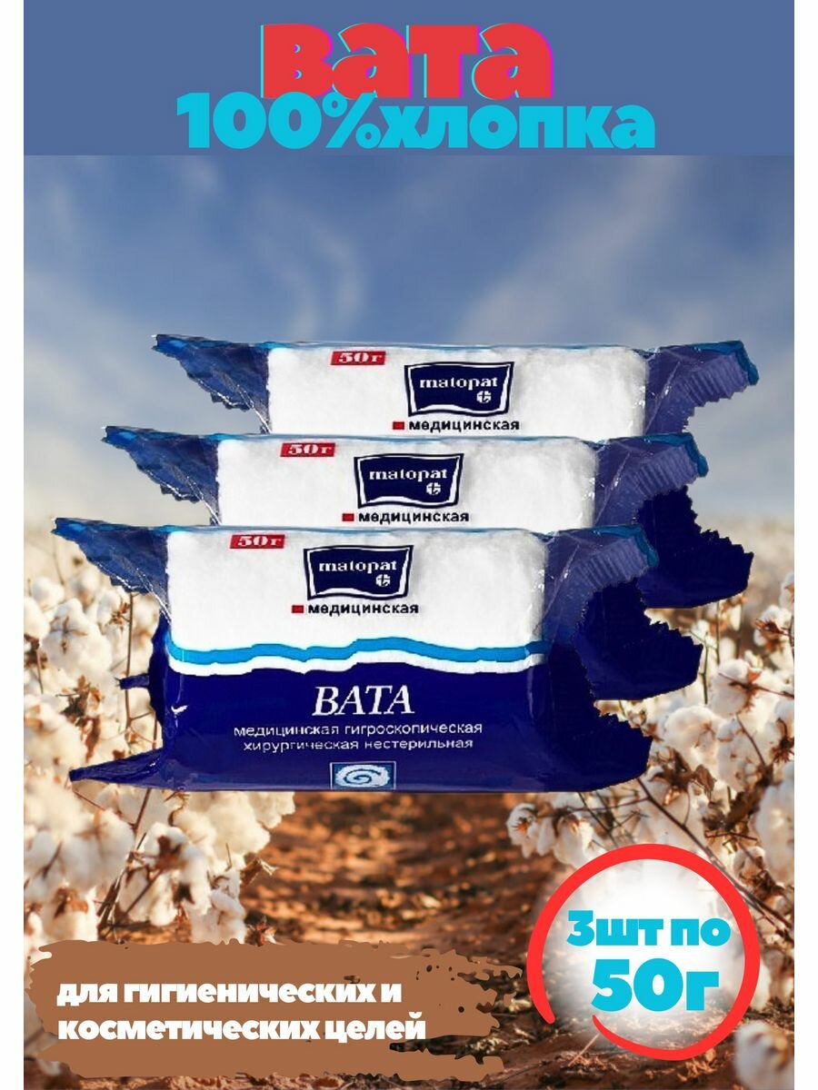 Купить Хирургическая вата Matopat 50 гр 3 упаковки