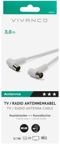 Кабель антенный Vivanco белый угловой Кабель антенный Vivanco 48034 (3 м, белый, угловой)